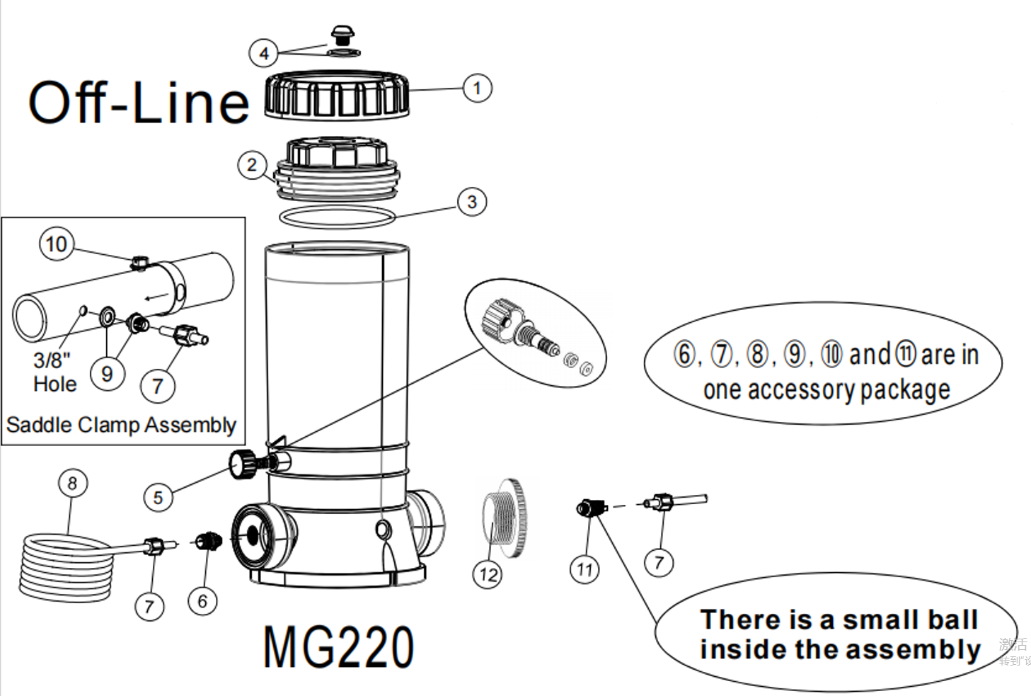 Off-line Automatic Pool Chlorinator for Pool Ponds,The product accessories are the same as those of CL220 and can be replaced with accessories.